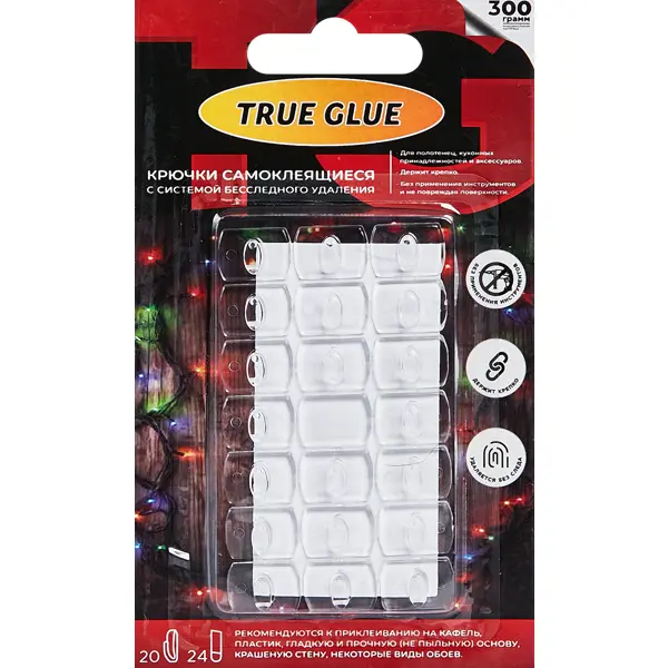 **Клипсы самоклеящиеся** применяются при установке гирлянд и проводов. Заменяют собой гвозди и саморезы, не требуют сверления основания для монтажа. Легко снимаются и не оставляют после себя следов. ### Особенности: - корпус изготовлен из прозрачного пластика; - в товарной упаковке находятся 20 штук.