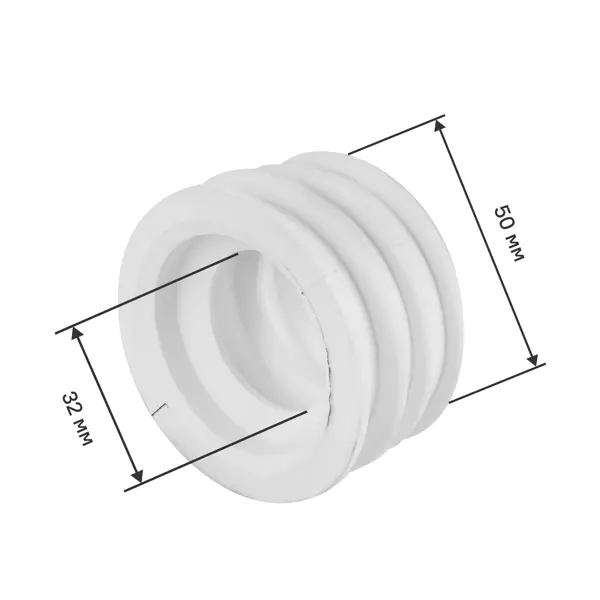 **Манжета переходная трехлепестковая ДТРД** — одна из составляющих частей канализационной системы. Применяется для подключения труб, гофрошланга. Обеспечивает герметичность, необходимую для нормальной работы всей системы и позволяет избежать каких-либо протечек. Обладает хорошими прочностными свойствами. ### Особенности: - цвет — белый; - размеры составляют 32 х 40 мм; - материал — ТЭП; - хорошая эластичность и износостойкость; - длительный срок службы; - быстрый и простой процесс монтажа.