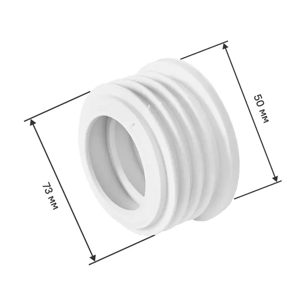 **Манжета переходная трехлепестковая ДТРД** позволяет подключить к канализационной трубе диаметром 50 мм другую трубу, гофрошланг сифона для душевого поддона, трапа, кухонной мойки, раковины, ванны или биде диаметром 73 мм. Деталь изготовлена из прочных и долговечных материалов. Она обеспечивает герметичное соединение труб. ### Особенности: - размер — 50 x 73 мм; - цвет — белый; - изготовлена из термоэластопласта (ТЭП) — полимерного материала, который отличается эластичностью и высокими термопластическими свойствами.