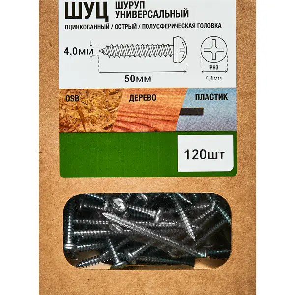 **Саморезы универсальные Сфера оцинкованные 4x50 мм 120 шт.** - универсальные саморезы Сфера оцинкованные — универсальные шурупы из оцинкованной стали для фиксации различных материалов. Обеспечивают плотный контакт элементов и надежное соединение.Цинкование или пассивирование шурупов делает их более устойчивыми к воздействию влаги, агрессивных сред. Пассивирование придает шурупу и декоративный вид.