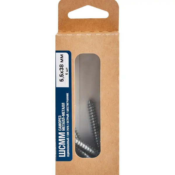 Саморезы по металлу шестигранные острые оцинкованные 5.5x38 6 шт.
