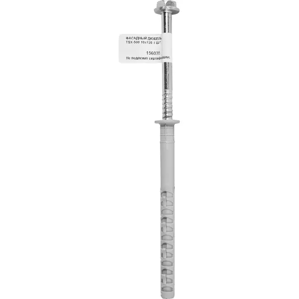 **Дюбель фасадный TSX-500** предназначен для высоких нагрузок. Он подходит для крепления строительных материалов и изделий к основаниям из бетона, кирпича, камня. Используется при установке конструкций на фасады здания, при монтаже дверных и оконных коробок. Дюбель имеет цилиндрический бортик, который предотвращает образование коррозии. При изготовлении он дополнительно обрабатывается цинком, благодаря чему повышается его прочность и износостойкость, увеличивается продолжительность срока службы. Изделие необходимо устанавливать в заранее просверленное отверстие. ### Особенности: - размер — 10 х 120 мм; - материал — сталь; - можно использовать только с шурупами, так как саморезы разрезают внутреннее тело дюбеля, из-за чего его функция снижается.