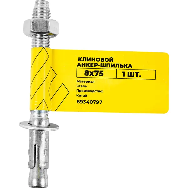 **Клиновой анкер-шпилька ВСВ** — строительный крепеж, изготовленный из высококачественной оцинкованной стали. Предназначен для крепления средних и тяжёлых конструкций к основаниям из натурального или природного камня, бетона, кирпича. Изделие отличается прочностью и износоустойчивостью. ### Особенности: - размер — 8 х 75 мм; - материал — оцинкованная сталь.