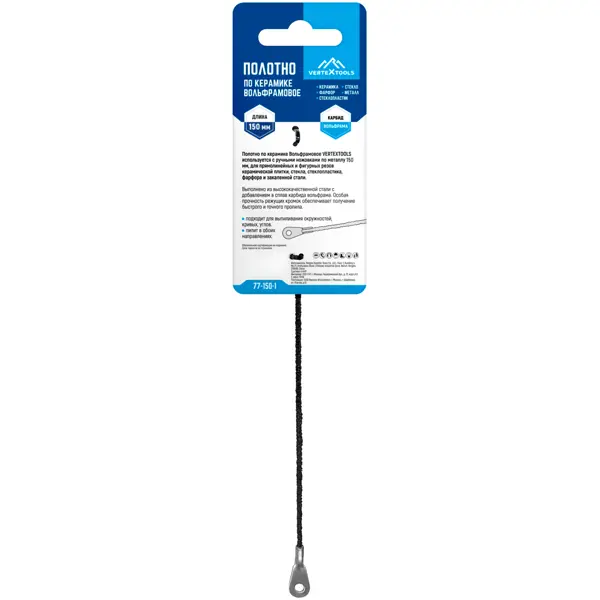 **Полотно Vertextools** обеспечивает точные и быстрые пропилы керамической плитки, стекла, стеклопластика, фарфора и закаленной стали. Изготовлено из высококачественной стали с добавлением карбида вольфрама, гарантируя особую прочность режущих кромок для эффективного использования. Подходит для выполнения прямолинейных и фигурных резов, а также для выпиливания окружностей, кривых и углов. Может использоваться с ручными ножовками по металлу 150 мм, обеспечивая универсальное применение для различных материалов. Пилит в обоих направлениях, что гарантирует удобство и эффективность в процессе работы. Полотно подходит для обработки керамики и металла, делая его незаменимым инструментом для различных строительных и ремонтных работ. ### Особенности:
