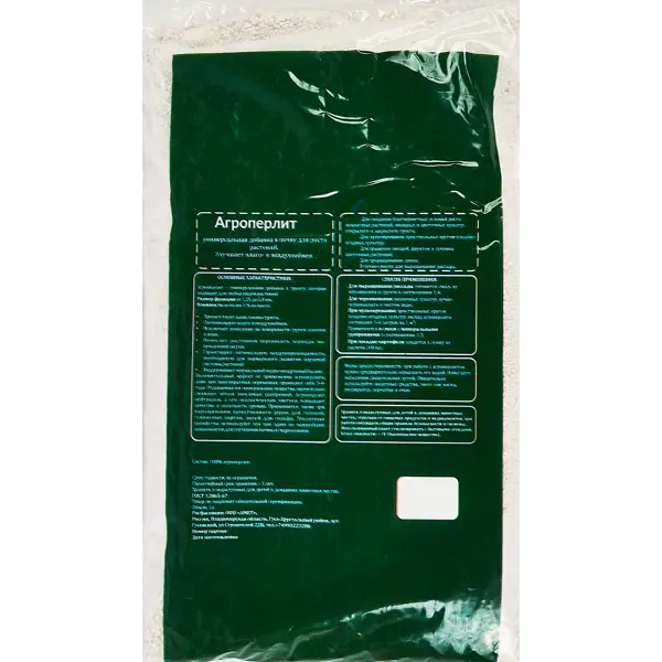 **Удобрение Агроперлит** объемом 5 л — это природный рыхлитель грунта вулканического происхождения, регулирующий в нем водный обмен. При его добавлении происходит насыщение почвы кислородом. Он выступает как дренаж, рыхлит почву, поглощает лишнюю влагу, отдавая ее растениям при необходимости. Агроперлит насыщает минералами и микроэлементами растения. Он улучшает почвенную структуру, защищает от появления грибков и плесени, устраняет неприятные запахи. Агроперлит используется для хранения фруктов и овощей, укоренения черенков, разрыхления грунта, создания мульчирующего материала и дренажа, разведения рассады, проращивания семян. Он поглощает органические загрязнители грунта, радионуклиды, тяжелые металлы, переводя из в недоступную для растения форму. На тяжелых и легких грунтах агроперлит рассыпают ровным слоем и заделывают на глубину 1,5-2 штыков лопаты. Для улучшения качества грунта его перемешивают с садовой землей в пропорции 1:2 или 1:3. ### Особенности: - улучшение водоудерживаю