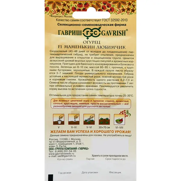 | Тип продукта | Семена овощных культур |