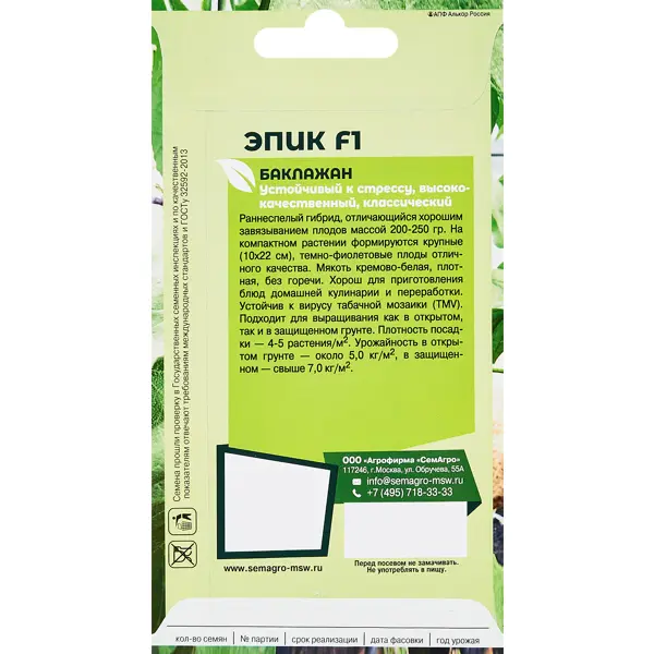 | Тип продукта | Семена овощных культур |