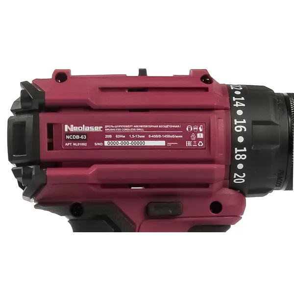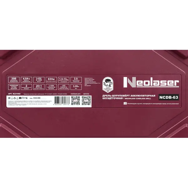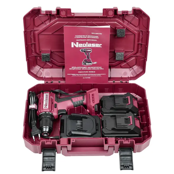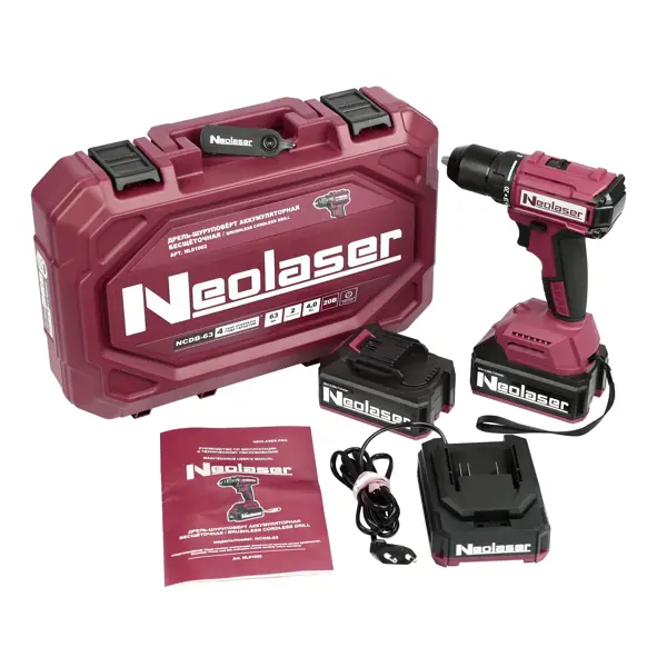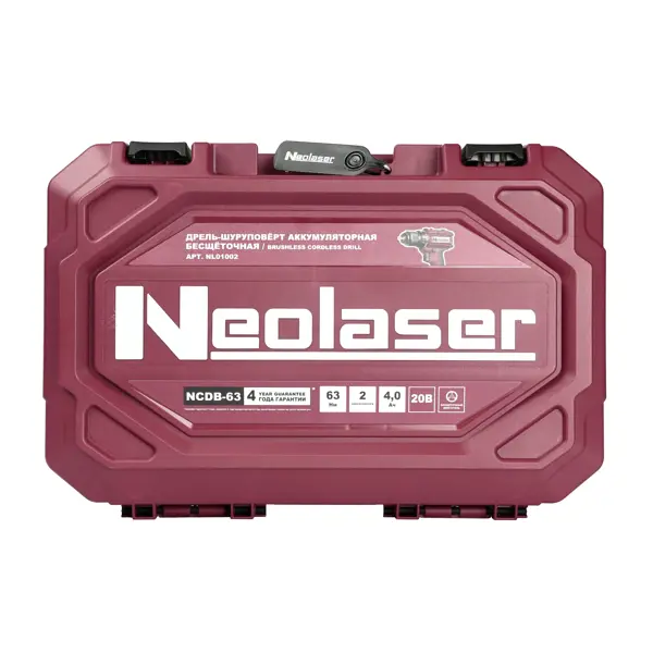 Дрель-шуруповерт аккумуляторная бесщеточная Neolaser NCDB-63, 20 В Li-ion 2x4 Ач