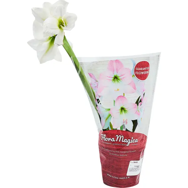 **Гиппеаструм микс** — луковичное растение с одним высоким цветущим стволом. Успешно культивируется в качестве комнатного растения. Некоторые виды используются на летних цветочных клумбах. Цветок относится к семейству Амариллисовых. Диаметр клубней, имеющих округлую форму, варьируется в пределах 5-10 см. Листья растения линейные, располагаются в два супротивных ряда, обладают зеленой окраской — у некоторых сортов бывают бордовыми. Цветок формирует зонтиковидное соцветие, которое включает несколько обоеполых цветочков. Последние бывают трубчатыми или воронковидными. После цветения у гиппеаструма формируются плоды в виде трехстворчатых коробочек с мелкими семенами внутри. Период цветения длится около 1,5 месяцев — начиная с появления стрелки и заканчивая увяданием цветков. Период роста характеризуется развитием только листьев. Период покоя занимает примерно 2-3 месяца. Обычно он начинается в октябре и заканчивается в январе. Культура предпочитает обильное освещение, но важно уберечь его