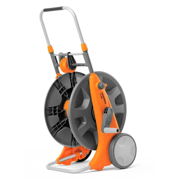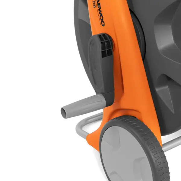 Тележка DAEWOO DWR 2090 позволит обеспечить хранение длинных шлангов и организовать удобный полив даже на большом участке. Данная тележка подходит для хранения шлангов диаметром 1/2" (13 мм) до 100м и диаметром 3/4" (19 мм) до 50м. Специальная направляющая для шланга позволяет укладывать его автоматически, сохраняя руки чистыми. Шланг накручивается на барабан тележки равномерно без заломов и перекручивания. Тележка обладает широким устойчивым основанием, которое не дает ей опрокидываться. Большие колеса тележки позволяют легко перемещать ее по газону или неровным поверхностям. Высококачественный ударопрочный пластик и защита от коррозии делают тележку долговечной. Телескопическая ручка позволяет настроить высоту рукоятки для комфортной работы и компактного хранения. Рукоятка имеет специальное прорезиненное покрытие. **Преимущества:** - Тележка подходит для хранения шлангов различной длины и диаметра - Равномерная смотка шланга без заломов и перекручивания - Направляющая для шланга