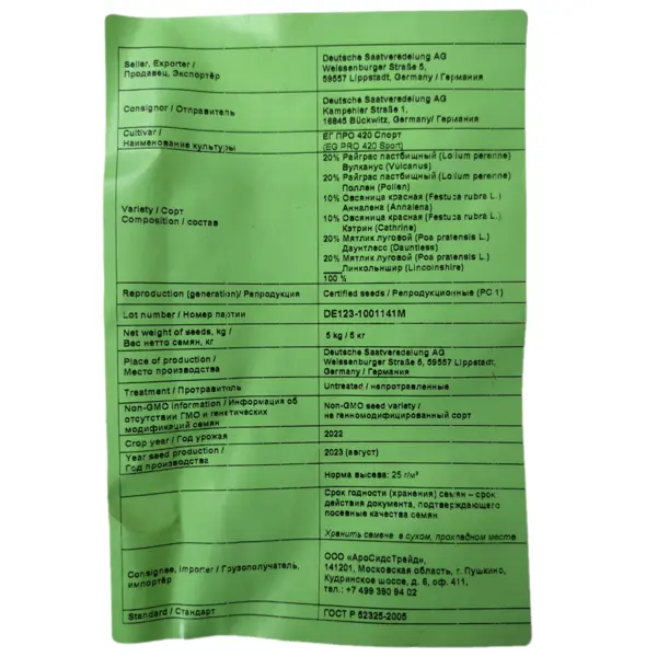 **Газон Агросидстрейд ЕГ Про 420 Спорт** — травосмесь, с помощью которой можно быстро и сравнительно легко получить качественный зеленый покров. Это отличное решение для загородного дома, дачного или садового участка. Мягкое покрытие может служить не только эффектным украшением ландшафтного дизайна, но и своеобразной площадкой для детских игр и организации пикников. Газону такого типа не требуется частая стрижка и особенный уход. Растения, входящие в его состав, не требуют частой подкормки. Устойчивость к засушливыми периодам и низким температурам повышенная. Перед посадкой газона важно очистить отведенную площадку от камней и различного мусора. При наличии пней важно выкорчевать их. Далее следует заняться удалением сорняков — особенно многолетних. Также нужно проследить за тем, чтобы площадка под засев была ровной и горизонтальной. Бедные песчаные почвы можно удобрить внесением чернозема или торфа, слишком жирный чернозем разбавляют песком. Грунт перед посевом семян требуется плотно у