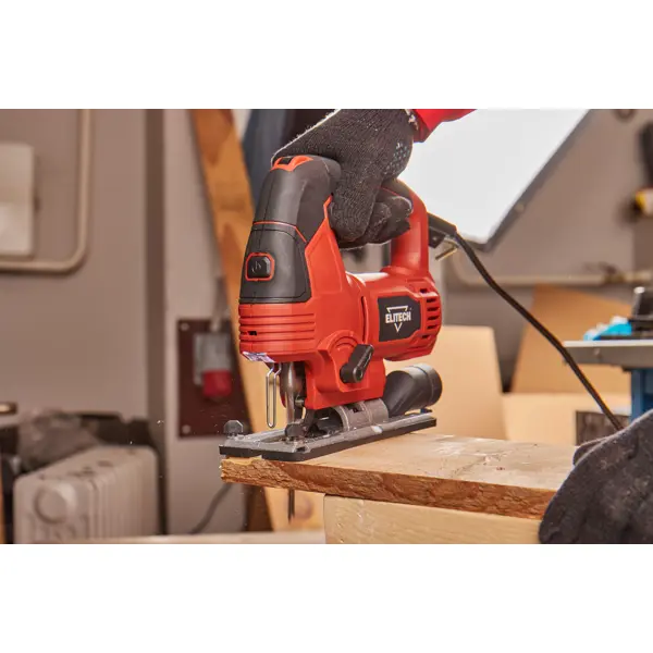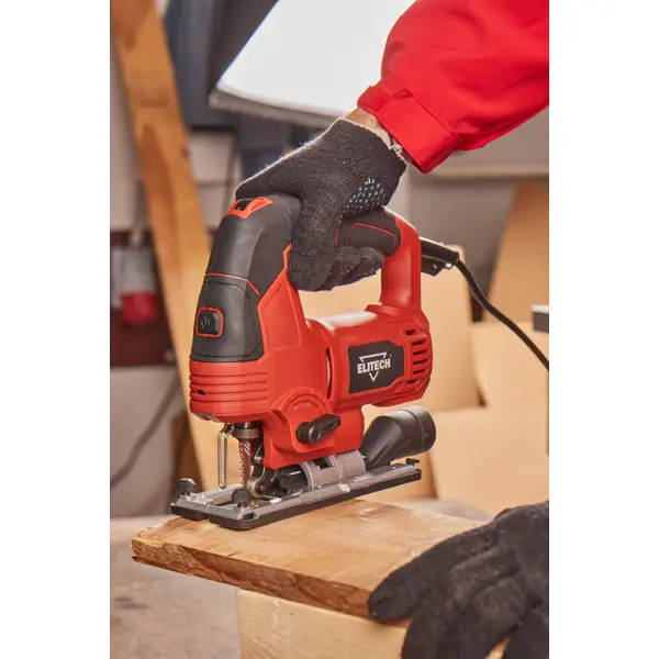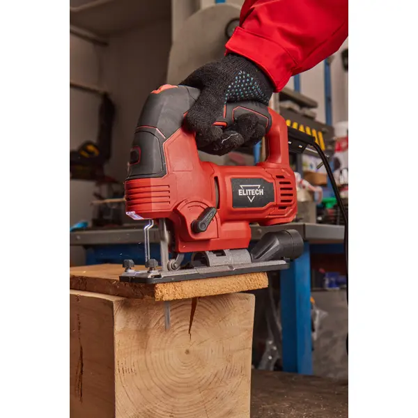 **Лобзик сетевой Elitech** предназначен для выполнения распилов и фигурных вырезов во время работ с заготовками из дерева, полимерных материалов, керамики, металла. Регулировка ходов от 800 до 3000 в минуту позволяет настроить режим работы в зависимости от обрабатываемого материала. Функция маятникового хода увеличивает скорость распиливания при создании черновых заготовок. Скобовидная рукоять с нескользящей накладкой, фиксация включения, быстрая смена пилки, подсветка и лазерная направляющая упрощают работу мастера. Щиток предотвращает соскальзывание ладони в рабочую область. В электроинструменте предусмотрен штуцер для присоединения пылесоса, который поможет убрать стружку и опилки из рабочей зоны. ### Особенности: