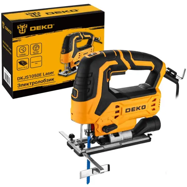 **Лобзик сетевой Deko DKJS1050E** представляет собой электроинструмент, который применяется в монтажных и ремонтных работах. Он позволяет распилить пласты из дерева и металла. Инструмент обладает литой подошвой, которая производится из сплавов на основе алюминия. Она отличается высокой жесткостью и прочностью, минимизирует вибрации во время работы. Предусмотрена регулировка оборотов, которая позволит настроить инструмент под определенную задачу. Угол резки ограничивает доступ к потенциально опасной зоне хода полотна. Параллельный упор помогает произвести прямолинейный распил параллельно обрезного края заготовки. Лазерная направляющая способствует выполнению точных резов по прямой линии. Встроенная подсветка предназначена для освещения места пропила. Она полезна в условиях слабого освещения. Патрубок для подключения пылесоса позволяет сохранит рабочее место чистым, так как опилки не будут разлетаться в разные стороны в процессе работы. ### Особенности: - простое обслуживание; - подходи