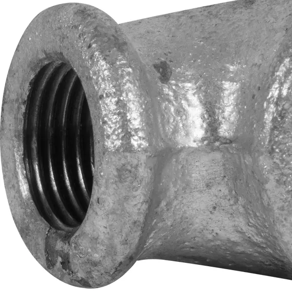 Угол переходной оцинкованный черный из чугуна размером 3\4"х 1\2"дюйма с внутренней резьбой с обеих сторон представляет собой цилиндр, изогнутый под прямым углом. Угол применяется в водоснабжении (не питьевая вода) и отоплении для соединения труб под углом 90° с использованием уплотнителя. Преимущества: - низкая цена (по сравнению с углом из латуни); - соответствие требованиям ГОСТ 8946-75; - универсальность применения в таких средах, как газ, вода, масло, воздух; - простота сборки трубного соединения с помощью гаечного ключа.