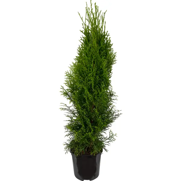 Туя западная сорта Смарагд входит в семейство кипарисовых и визуально, пирамидальной формой кроны, напоминает кипарис. Высота растения может достичь уровня 2-х и даже 3-х метров, а диаметр кроны в значительной мере зависит от окружающих условий. Растут туи Смарагд довольно медленно – на 10 см в высоту и 5 см в ширину, но способны прожить до 100 и даже до 150 лет. Важная особенность сорта – стабильность насыщенного зеленого колера хвои независимо от сезона. Уход: - высадку проводят в дренированную почву, с достаточным количеством солнечного света и в месте, защищенном от ветров; - каждые 4 месяца выполняют подкормку корневой системы; - интенсивность полива к зиме снижают; - обрезку проводят раз в 2-3 года.