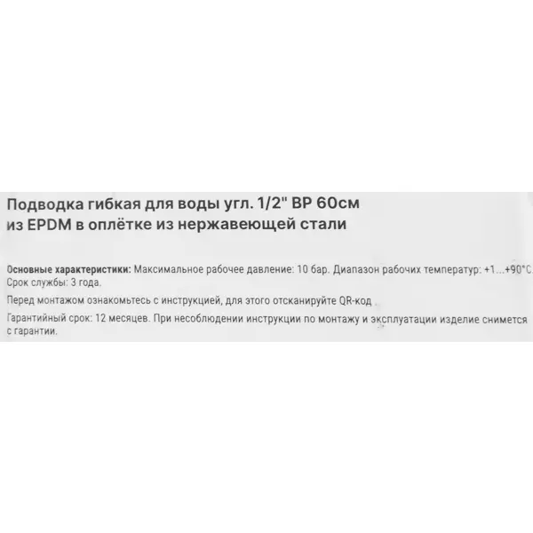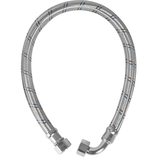 **Гибкая подводка для воды угловая Aquabeam** изготовлена из нержавеющей стали, предназначена для подключения к водопроводу смесителей, унитазов, душевых кабинок и т. д. Рукава резиновые в металлической оплетке с штуцерами. В изготовлении применяется безопасная резина, которая не деформируется при постоянном контакте с водой, в том числе повышенной температуры. ### Особенности: - диаметр — 1/2 дюйма; - длина — 60 см; - оснащен внутренней резьбой.