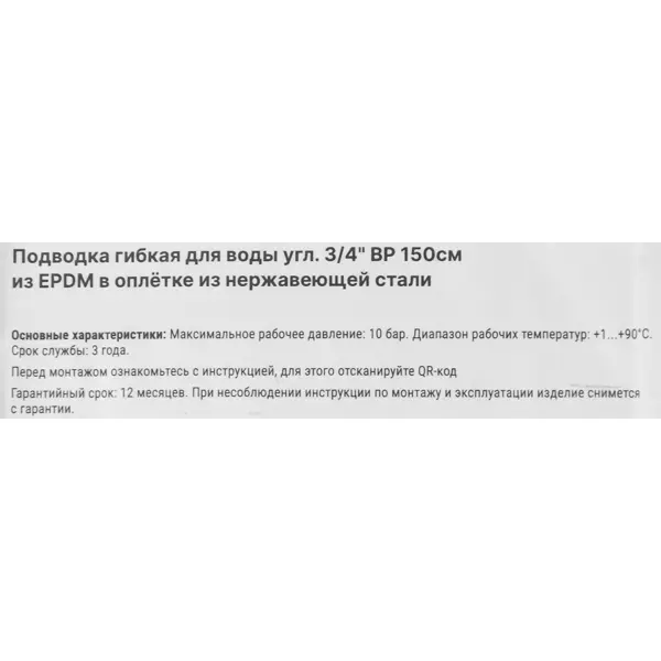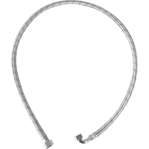 **Гибкая подводка для воды угловая Aquabeam** изготовлена из нержавеющей стали, предназначена для подключения к водопроводу смесителей, унитазов, душевых кабинок и т. д. Рукава резиновые в металлической оплетке с штуцерами. В изготовлении применяется безопасная резина, которая не деформируется при постоянном контакте с водой, в том числе повышенной температуры. ### Особенности: - диаметр — 3/4 дюйма; - длина — 150 см; - оснащен внутренней резьбой.