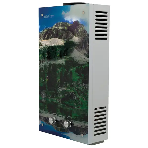 **Колонка газовая Oasis Eco L-20** отличается лаконичным дизайном, органично вписывается в современные интерьеры ванных и душевых комнат, кухонь. Работает от баллона со сжиженным газом. Благодаря наличию системы газ-контроля обеспечивается безопасность использования устройства и долговечность его работы. Модель предназначена для настенного монтажа. Поддерживает бесперебойную работу при давлении воды в системе в пределах от 0,2 до 7 атмосфер. Оснащена большим дисплеем, на который выводятся показатели температуры нагрева воды. ### Особенности: - допустимая температура нагрева воды составляет 75°С; - индикация на корпусе предназначена для идентифицирования работы устройства и уровня нагрева воды; - система ограничения исключает закипание воды и выход из строя всего устройства; - производительность составляет 10 л/мин; - цвет корпуса — разноцветный.