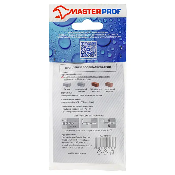 Набор для крепления бойлера Masterprof 12x70 мм 2 шт.
