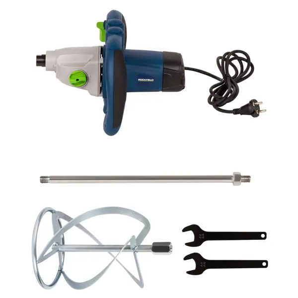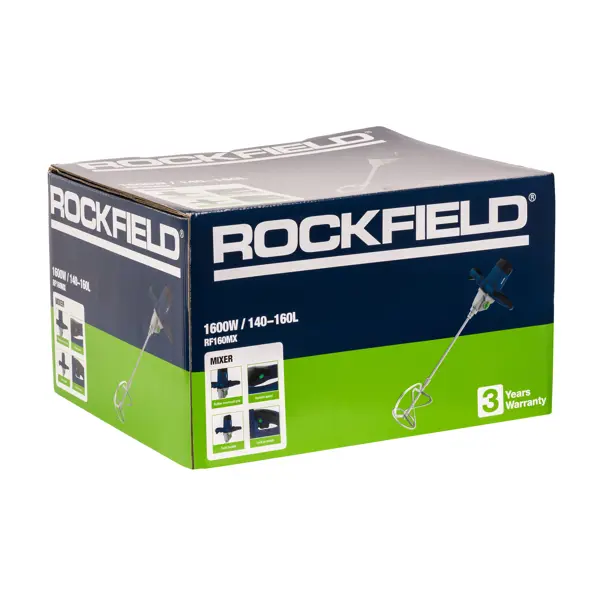 **Миксер строительный Rockfield RF160MX** представляет собой электрический инструмент, необходимый для смешивания строительных материалов. Он подходит для работ с цементом, песком, глиной, плиткой. Миксер быстро и эффективно размешает различные составы бетона, клея, растворов для штукатурки, перемешивает готовые заводские составы, «освежает» строительные смеси. Функция реверса позволяет освободить заклинившую оснастку (сверло/коронка) или выкрутить крепежи. При помощи переключателя запускается мотор, который начинает крутить шпиндель с патроном в левую сторону. Фиксация выключателя используется при длительной работе инструмента. Регулировка скорости помогает оптимально настроить работу оборудования исходя из заданных целей. ### Особенности: - работает от сети питания; - мощность — 1600 Вт; - скорость вращения — 180-460/300-750 об/мин; - длина сетевого кабеля оптимальная и составляет 2 м; - в комплект входят строительный миксер RF160MX, лопатка для смешивания, 2 ключа. **БЕРЕЖНО К ЛЮД