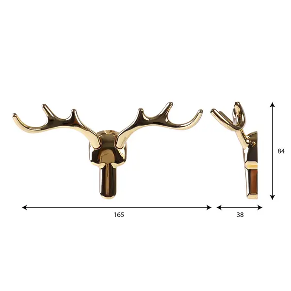 **Крючок Larvij Олень** изготовлен из стали, что делает его прочным и долговечным. Цвет изделия — золотой, что позволяет легко сочетать его с различными интерьерами. Размеры крючка составляют 16,5 х 8,7 х 3,8 см, а максимальная нагрузка — до 3 кг. Это делает его подходящим для использования в шкафах, комодах и других мебельных изделиях. ### Особенности: - в комплект поставки входит один крючок и упаковка; - крепится к стене при помощи саморезов (не идут в комплекте).