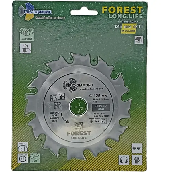 Диск пильный по дереву Trio-Diamond FL846 12Т 125x22.23x2 мм, кольцо 16 мм