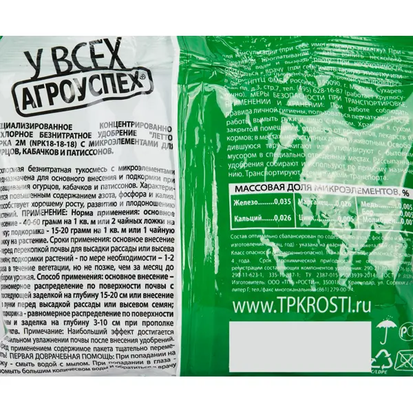 | Состав | Азот, фосфор, калий NPK 18-18-18, микроэлементы |