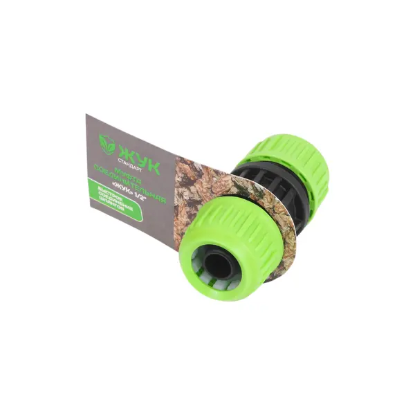 **Муфта ремонтная Жук 324466-00** представляет собой приспособление, которое позволяет удобно соединить два отрезка шланга. Она надежно фиксирует соединения поврежденного участка. Быстросъемная ремонтная муфта изготовлена из прочного износостойкого материала. Благодаря этому она не подвержена коррозии, на ее стенках не образуются отложения. Изделие обеспечивает защиту от протечек. Важно: внешний вид товара на сайте может отличаться от вида товара в магазине. ### Особенности: - диаметр на выходе — 1/2 дюйма; - винтовое крепление.