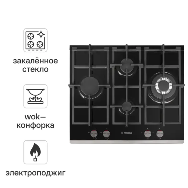 Газовая варочная панель Hansa BHKS65135 60 см 4 конфорки цвет черный