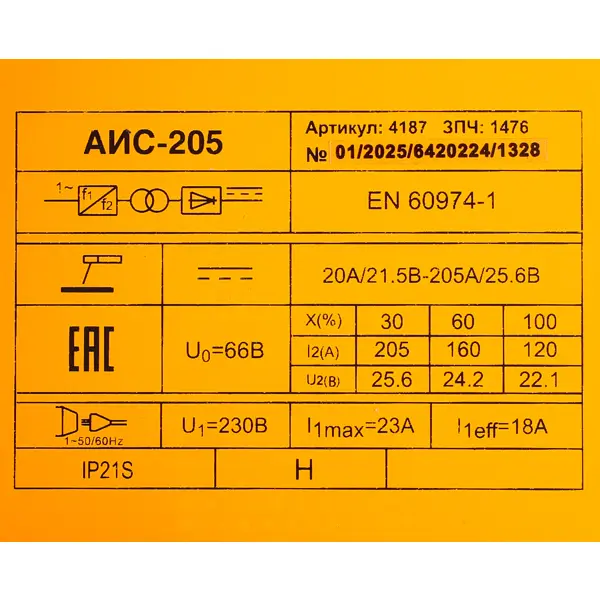 Сварочный аппарат инверторный АИС-205, 205 А, до 4 мм
