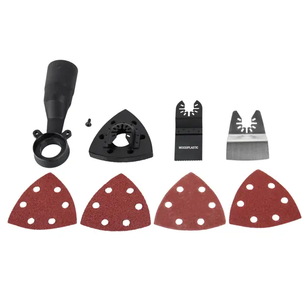 | Аксессуары в комплекте | 1 – многофункциональный инструмент 2 – шлифлист (3шт) 3 – дельта подошва 4 – пилка по дереву 5 – патрубок пылеотводящий 6 – дополнительная рукоятка 7 - нож 8 – паспорт 9 – шайба фасонная 10 – кейс |