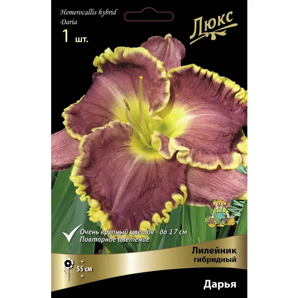 **Лилейник гибридный Дарья** — это эффектный сорт с повторным цветением. Куст достигает высоты до 55 см. Цветки крупные, пурпурно-розовые с желтым горлом и желтой гофрированной каймой, диаметром 17 см. Цветки сохраняют свою декоративность с весны до глубокой осени. Придаточные корни культуры шнуровидные — обычно мясистые и толстые, что помогает кустарнику выжить в засушливые периоды. В естественных условиях лилейник произрастает на опушках леса, в тени кустарников. Поэтому его можно выращивать не только на солнечном участке, но и в небольшом затенении. В регионах с прохладным климатом культуре может не хватать тепла и света — в этом случае единственно правильным решением станет хорошо освещенный открытый участок. Высоких требований к почве растение не предъявляет. По возможности предпочтение следует отдать плодородному суглинку с хорошим дренажом, с нейтральной или слабокислой реакцией. В глинистую почву нужно внести песок и перегной. Песчаный грунт следует обогатить органикой. В откры