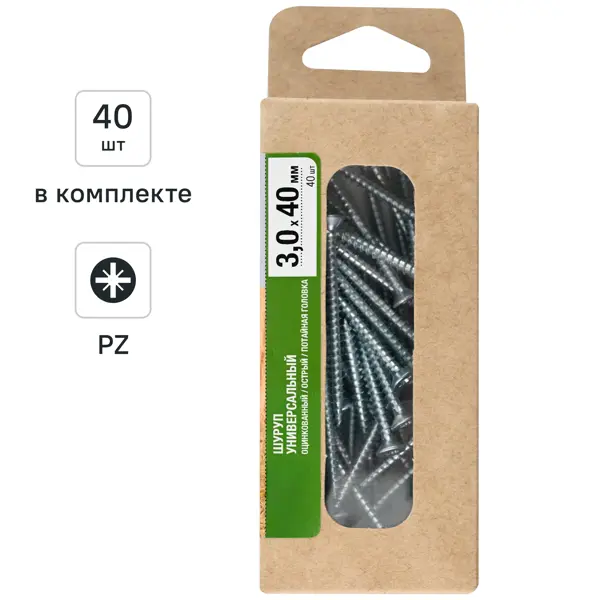 Саморезы универсальные потайные острые оцинкованные 3x40 мм 40 шт.