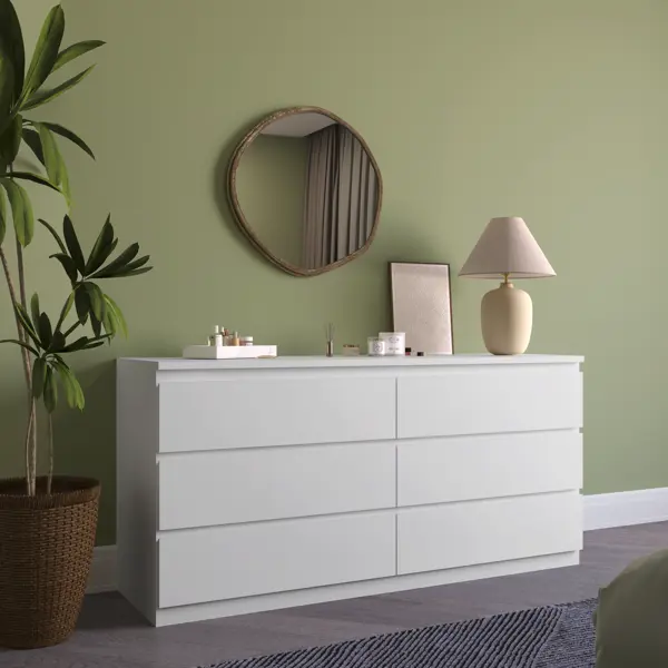 Комод Альма 6 ящиков 159x76.4x48.2 см ЛДСП цвет белый