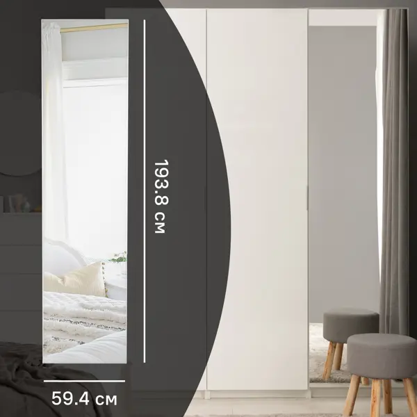 Дверь с зеркалом для шкафа Лион 59.4x193.8x2 см ЛДСП цвет белый