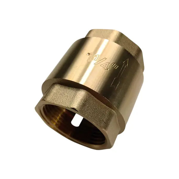 Клапан обратный латунный 1 1/4" без фильтра служит для предотвращения движения обратного потока рабочей среды в трубопроводе. Размер резьбы 1 1/4". Устанавливается на насосы и применяется в системах полива, водоснабжения. Его конструкция с использованием высококачественного пластика для сердечника обеспечивает превосходную герметичность и долговечность. Стрелка на корпусе обратного клапана указывает направление потока воды через него Особенности: - установочный размер — 1 1/4"; - материал изготовления — латунь.