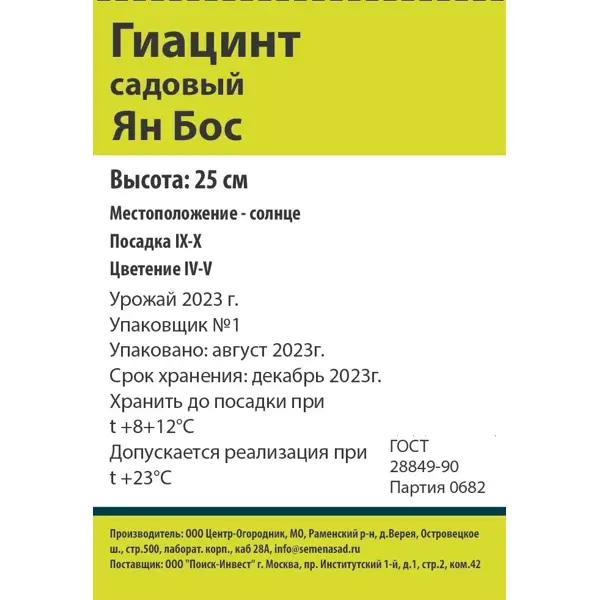 **Гиацинт садовый Ян Бос** - безусловный лидер среди растений, пригодных для выгонки. Его плотные, с сильным ароматом соцветия из звездчатых цветков сидят на безлистных цветоносах. У гиацинта много достоинств при выращивании в открытом грунте: он компактен, его цветки долго не увядают, имеют разнообразнейшую окраску и приятно пахнут. **Местоположение:** солнечное или слегка затененное место. **Почва:** любая садовая почва с большим содержанием гумуса. **Посадка:** Высаживают в сентябре-октябре на глубину 15 см на расстоянии 20 см. **Цветение:** конец апреля - начало мая. **Размножение:** луковицами, луковицами-детками, луковичными чешуями осенью. **Использование:** для оформления цветников весной, зимней выгонки и на срезку. Ян Бос — цветки красные, высота 25 см. **Категория:** Гиацинты садовые