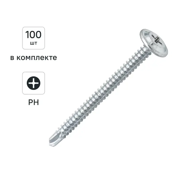 Саморезы по металлу Dilwis с пресс-шайбой со сверлом оцинкованные 4.2x50 мм 100 шт.