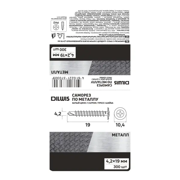 Саморезы универсальные со сверлом оцинкованные с пресс-шайбой 4.2x19 мм 300 шт. предназначены для применения в различных областях, таких как строительство, мебельное производство и ремонт. Они подходят для работы с металлическими поверхностями и обеспечивают надежное и долговечное соединение. Изготавливаются из высококачественной стали и имеют оцинкованное покрытие, которое обеспечивает защиту от коррозии. Наконечник в виде сверла позволяет легко и быстро сверлить отверстия в металлических поверхностях. Форма головки полусферическая с пресс-шайбой обеспечивает надежное закрепление и предотвращает саморезы от самопроизвольного вывинчивания. ### Преимущества - Высокая прочность и надежность соединения - Универсальность применения - Простота использования - Высокое качество покрытия - Экономичность