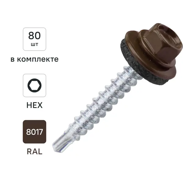 Саморезы кровельные по дереву DILWIS с пресс-шайбой со сверлом RAL 8017 4.8x35 мм 80 шт.