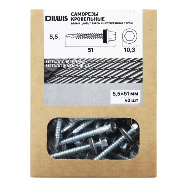Саморезы кровельные по металлу Dilwis с пресс-шайбой 5.5x51 мм 40 шт.
