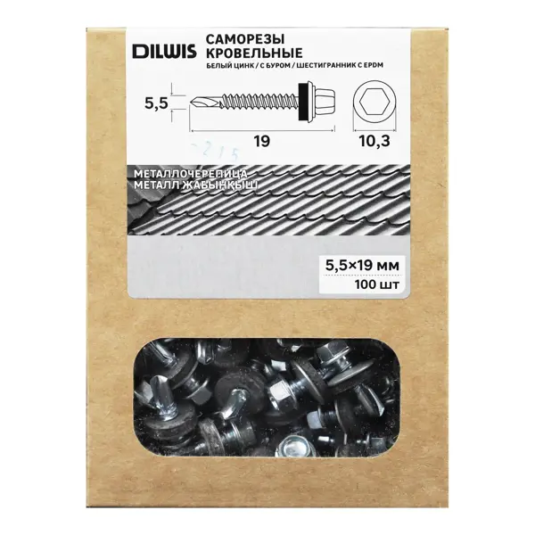 Саморезы кровельные по металлу Dilwis с пресс-шайбой 5.5x19 мм 100 шт.
