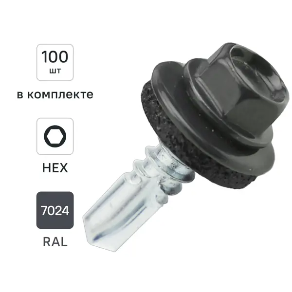 Саморезы кровельные по металлу Dilwis с пресс-шайбой RAL 7024 5.5x19 мм 100 шт.