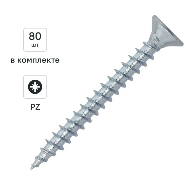**Универсальные саморезы Dilwis 5x60 мм 80 шт.** идеально подходят для различных строительных и ремонтных работ, таких как монтаж гипсокартона, деревянных конструкций, а также для крепления различных материалов к бетону. Благодаря своей универсальности, эти саморезы могут быть использованы в различных областях, начиная от строительства и заканчивая ремонтом и мебельным производством. ### Преимущества - Высокая прочность и надежность благодаря использованию стали в качестве основного материала. - Оцинкованное покрытие обеспечивает защиту от коррозии и увеличивает срок службы саморезов. - Универсальность применения позволяет использовать саморезы в различных областях, включая строительство, ремонт и мебельное производство. - Потайная головка обеспечивает плотное прилегание самореза к поверхности, что предотвращает образование выступов и обеспечивает ровную поверхность. - Острый наконечник облегчает процесс вкручивания самореза в поверхность. - Шлиц Pozidriv (PZ) обеспечивает надежное и