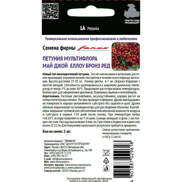 Семена цветов Поиск петуния мультифлора Май Джой Еллоу Бронз Ред 5 шт.