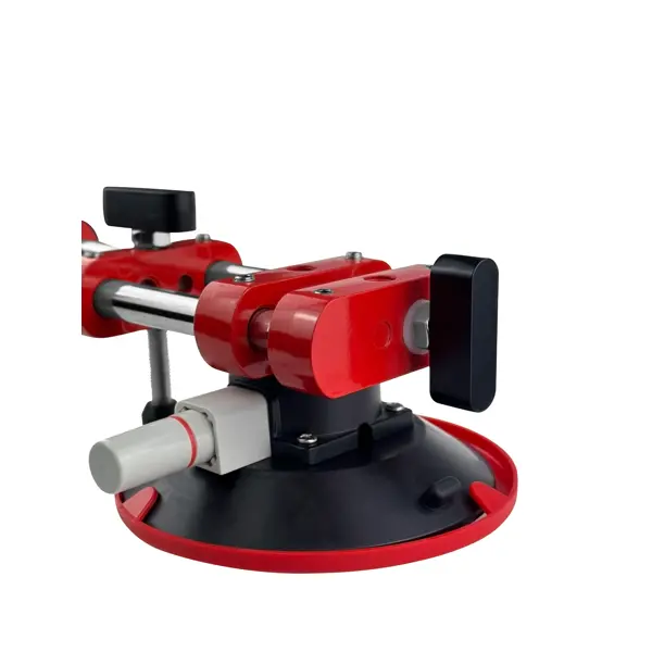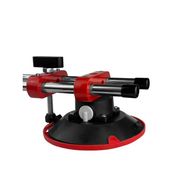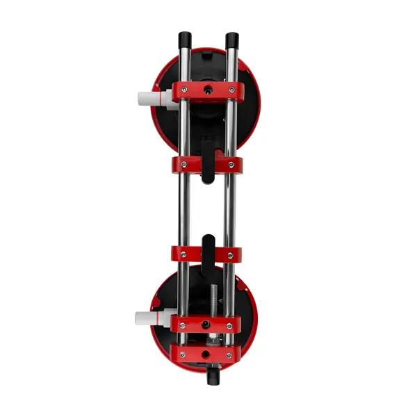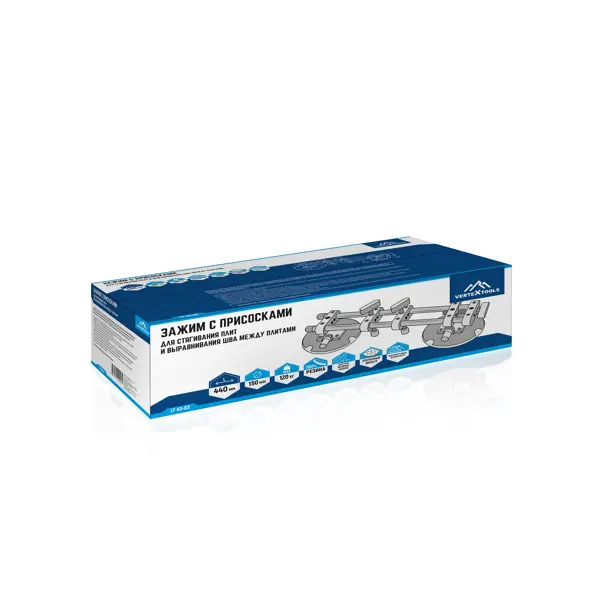 **Система для стягивания и выравнивания швов Vertextools 17-03-03** — небольшое и удобное в использование приспособление, которое обеспечивает плотное сжатие гладких пластин и блоков из натурального или искусственного камня. Также оно позволяет выровнять их стыки в единой плоскости для получения качественного результата. Устройство такого типа широко применяется в процессе обработки, разметке и монтаже готовых элементов. Конструктивно система состоит из жесткой конструкции, которая включает металлические трубки. На ней зафиксированы две мощные присоски. Каждая из них дополнена помпой, которая создает разряжение под мембраной и может надежно закрепляться на плите. При этом одна из присосок зафиксирована на раме в неподвижном состоянии, а другая служит для перемещения путем вращения резьбовой шпильки — это позволяет сдвигать и раздвигать ее вместе с заготовками. ### Особенности: - выдерживает нагрузку до 120 кг; - простая и надежная конструкция; - регулировка по вертикали осуществляетс