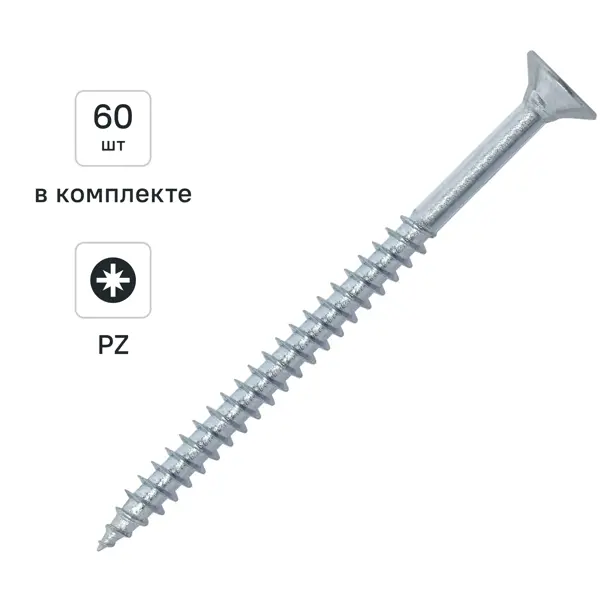 Саморезы универсальные Dilwis потайные острые оцинкованные 5x70 мм 60 шт.