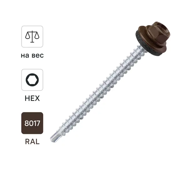 Саморезы кровельные по дереву DILWIS с пресс-шайбой со сверлом RAL 8017 4.8x64 мм на вес