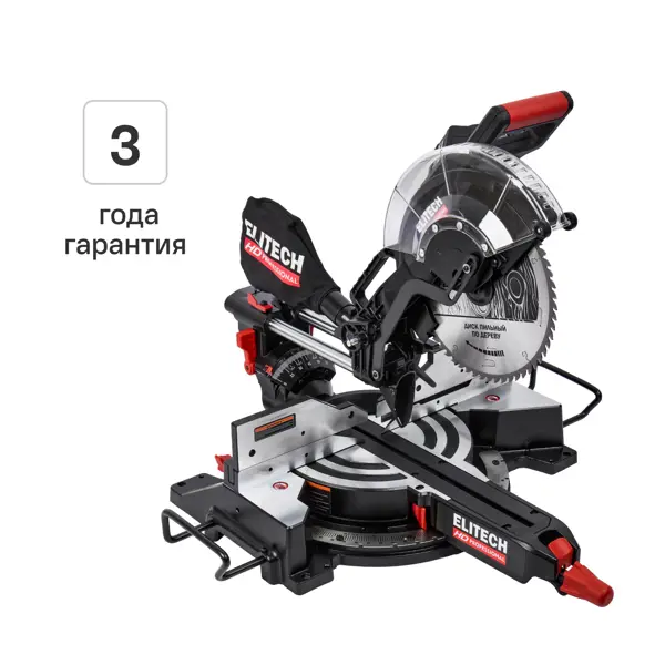 **Расширенная гарантия 3 года для серии Elitech HD при регистрации электронного гарантийного талона на сайте производителя.** **Пила торцовочная сетевая Elitech HD MS2030C** — электроинструмент, который обеспечивает точное торцевание дерева и материалов из него. Может использоваться с заготовками любой длины и формы при выполнении отделочных и строительно-монтажных работ, производстве столярных и плотницких изделий. Устройство имеет наклон в обе стороны и большие углы поворота, что делает эту модель пилы практически универсальной. Устройство рассчитано на профессиональное использование. ### Особенности: