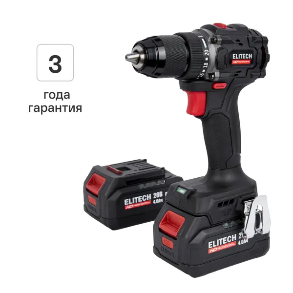 Дрель-шуруповерт аккумуляторная бесщеточная Elitech HD CD20SL2 E2201.041.02, 20 В Li-ion 2x4 Ач